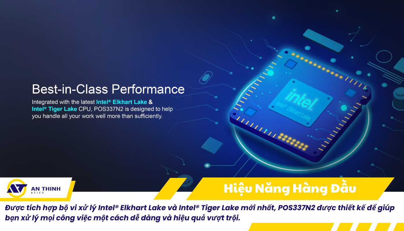 POS337N2 là thiết bị POS bán hàng tích hợp tất cả trong một với màn hình cảm ứng kích thước lớn 15.6 inch độ phân giải Full HD (1920 x 1080), thiết kế không quạt hoạt động êm ái, hiệu năng mạnh mẽ và linh hoạt trong triển khai. Sản phẩm có hai tùy chọn cấu hình gồm F35 (Celeron J6412) và F85U (Core i3-1115G4E), phù hợp với nhiều loại hình kinh doanh khác nhau như bán lẻ, nhà hàng, quán cafe hay kiosk tự phục vụ.